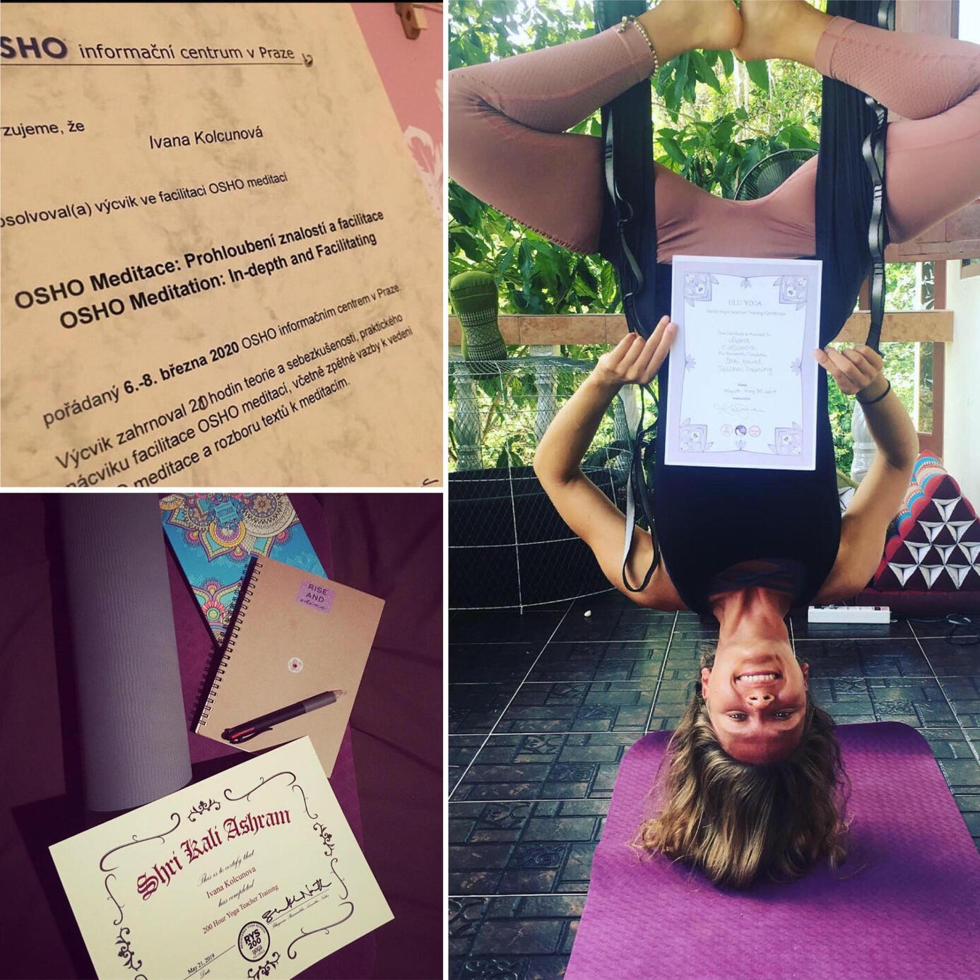 Kromě jógy a šál mě baví OSHO aktivní meditace. Jsem moc ráda, že se mi poštěstilo na jaře 2020 projít facilitačním výcvikem pod vedením Vatayany, přímé žačky Osha.